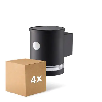 Descrizione Confezione Multipack 4x D'Lite Solis Luce Da Parete Solar Nero Up & Down - 830 Luce Calda - | IP54 - Sensore Di Movimento