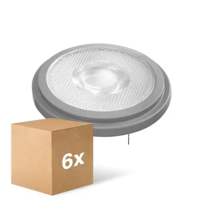 La Confezione Multipack 6x Ledvance SUPERIOR Faretti LED Riflettore G53 AR111 11.7W 800lm 40D - 927 Bianco Molto Caldo | Miglior Resa Cromatica - Dimmerabile - Sostitutiva 75W è la perfetta sostituzione della classica lamapda alogena75W G53 con colore della luce 927 Bianco Molto Caldo. Questa lampadina ha una forma "Aluminium Reflector" (Riflettore) con diametro di 111mm e gli attacchi hanno una distanza di 53mm l’uno dall’altro. La lampada G53 è molto più sicura in ambienti umidi rispetto le lampade alogene a 230volt, le lampade G53 funzionano a 12V. Perciò c’è bisogno del trasformatore per avere un voltaggio di 12V. Puoi trovare i trasformatori adatti in "Accessori" su questa pagina prodotti. Di quale trasformatore hai bisogno, dipende dal numero di lampade che vuoi connettere. Il nostro servizio clienti puoi aiutarti con la scelta. Passare a LED ti offrirà tanti vantaggi!