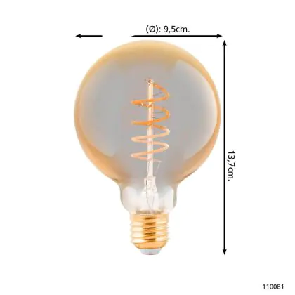 Descrizione Eglo LED Globe E27 Filamento Ambra 4W 245lm - 820 Bianco Molto Caldo | Dimmerabile - Sostitutiva 25W