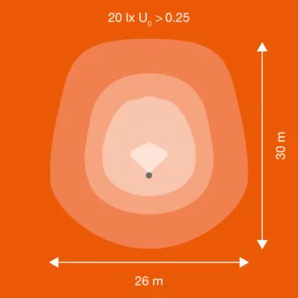 La copertura ottica in vetro temperato permette una distribuzione luminosa uniforme. In pochi secondi dall’accensione questo proiettore LED Ledvance raggiunge la luminosità massima di 18400 lm. Il flusso luminoso emesso è asimmetrico (55° x 110°).