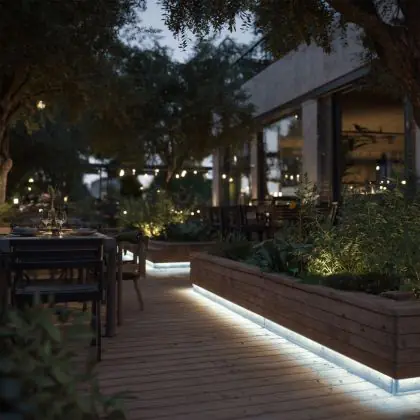 Questa fonte di luce può sempre essere utilizzata per l'illuminazione d'accento. Per usarla invece come illuminazione generale bisogna considerare l’emissione luminosa e l’apertura del fascio di luce. Questa striscia LED è lunga 5000 mm e ha una potenza luminosa di 1360 Lumen. Dividendo il numero di Lumen per la lunghezza della striscia LED troverai la potenza luminosa per metro. Le strisce LED hanno generalmente un fascio di luce ad ampio angolo, che non fa eccezione per questo articolo: °. Clicca qui per scoprire quanti lumen servono in ogni stanza.